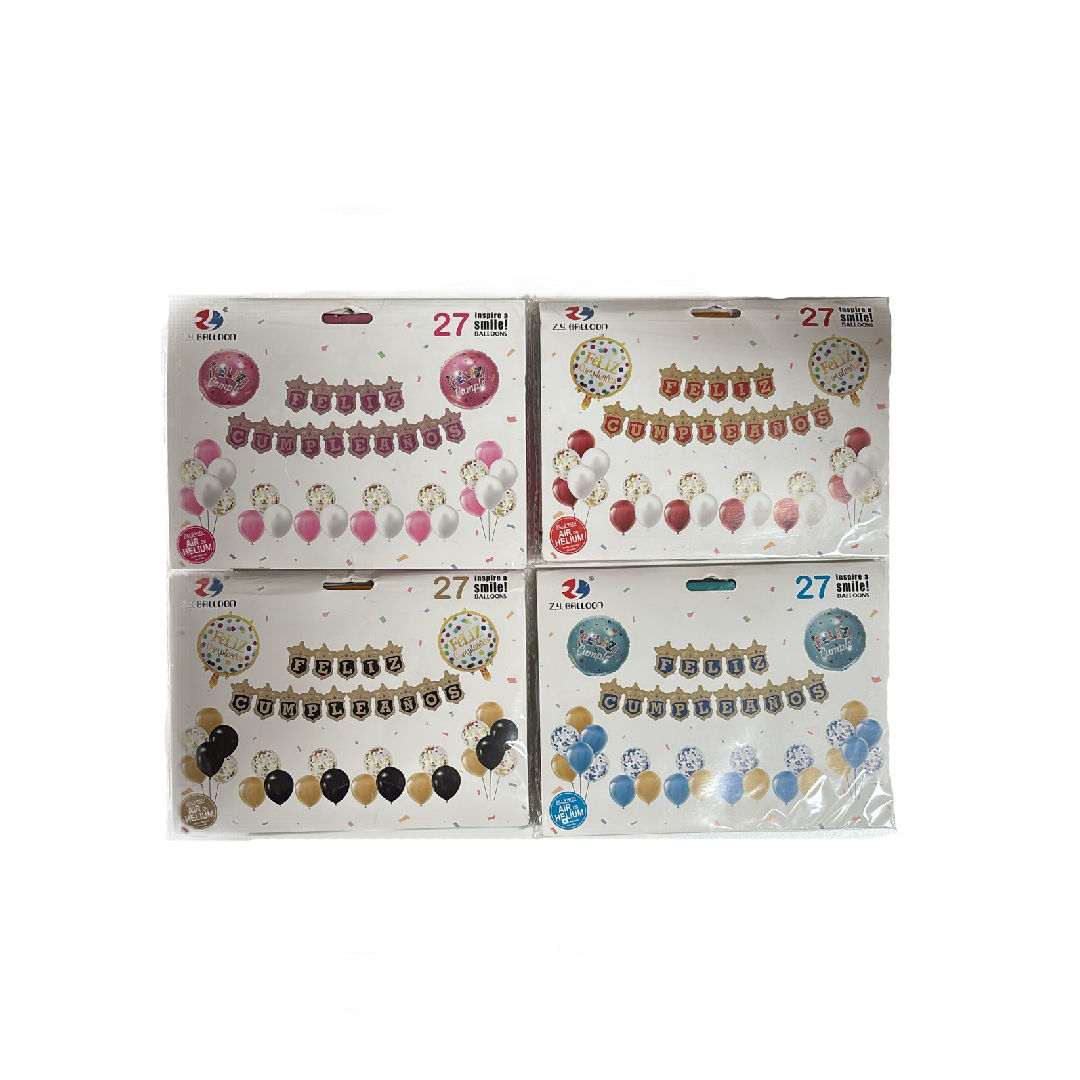 16 Globos látex, 8 globos con confetti, 2 globos redondos, 3 globos frase