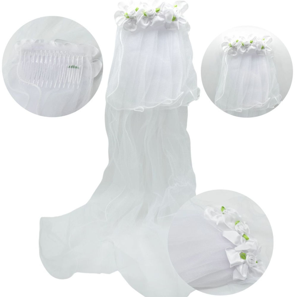 Tocado 3 Flores Tela con Peineta con Tul